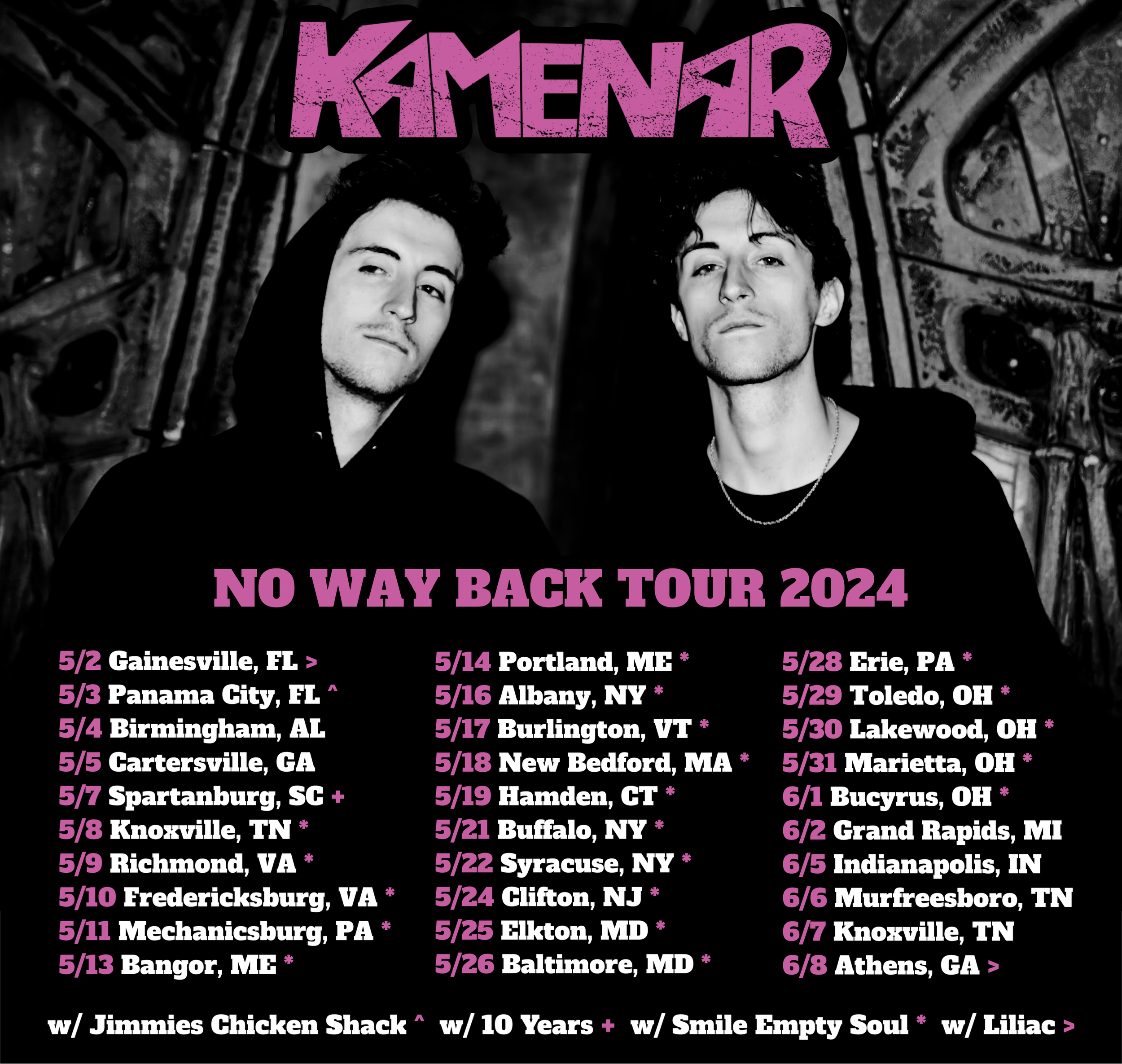 Kamenar is heading back on the road, this time on their longest lineup of cities yet on the No Way Back Tour