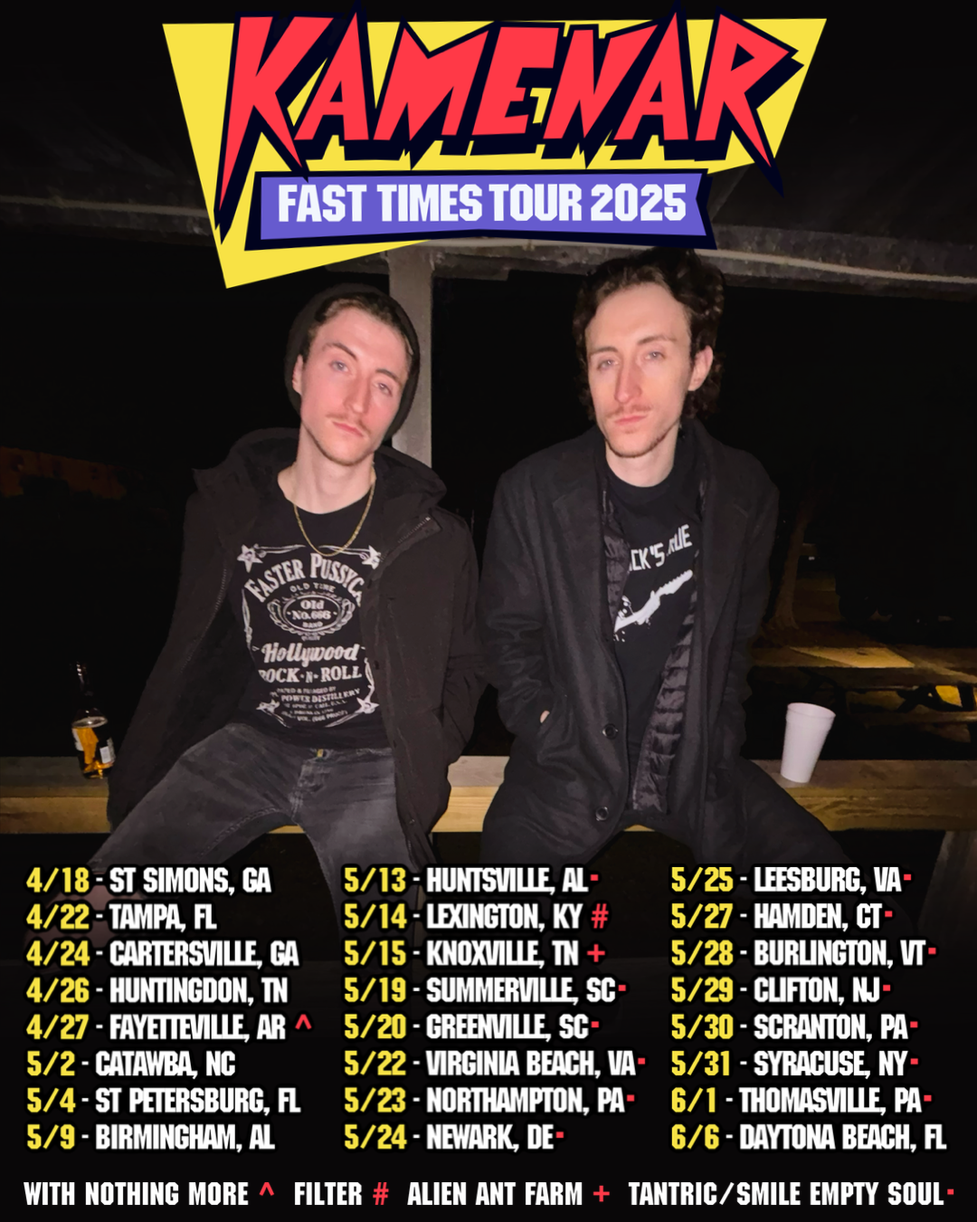 Kamenar will be hitting the road on the Fast Times Tour 4/18 - 6/6. Select dates joining Nothing More, Alien Ant Farm, Smile Empty Soul & Tantric, as well as a newly announced show at Amalie Arena for the TB Lightning NHL Playoff Game.